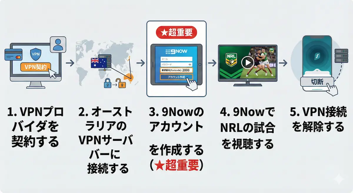 【完全図解】日本からNRLを9Nowで視聴するまでのステップ